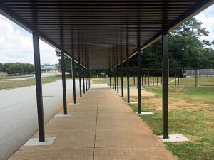 Pembuatan kanopi di suatu komplek sekolahan, dimana kanopi dibangun di tepi jalan penghantaran & penjemputan para siswa, sehingga terhindar dari hujan atau panas di siang hari.
