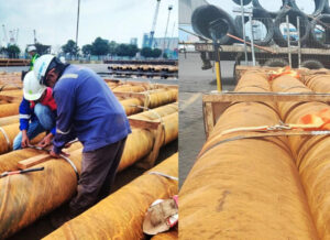 Proyek Rigging pipa besi baja ASTM milik PT Freeport di dermaga Jamrud Tanjung Perak Surabaya, mengikat 8 pipa menjadi satu kesatuan yang kemudian siap untuk dimuat di kapal menggunakan crane.