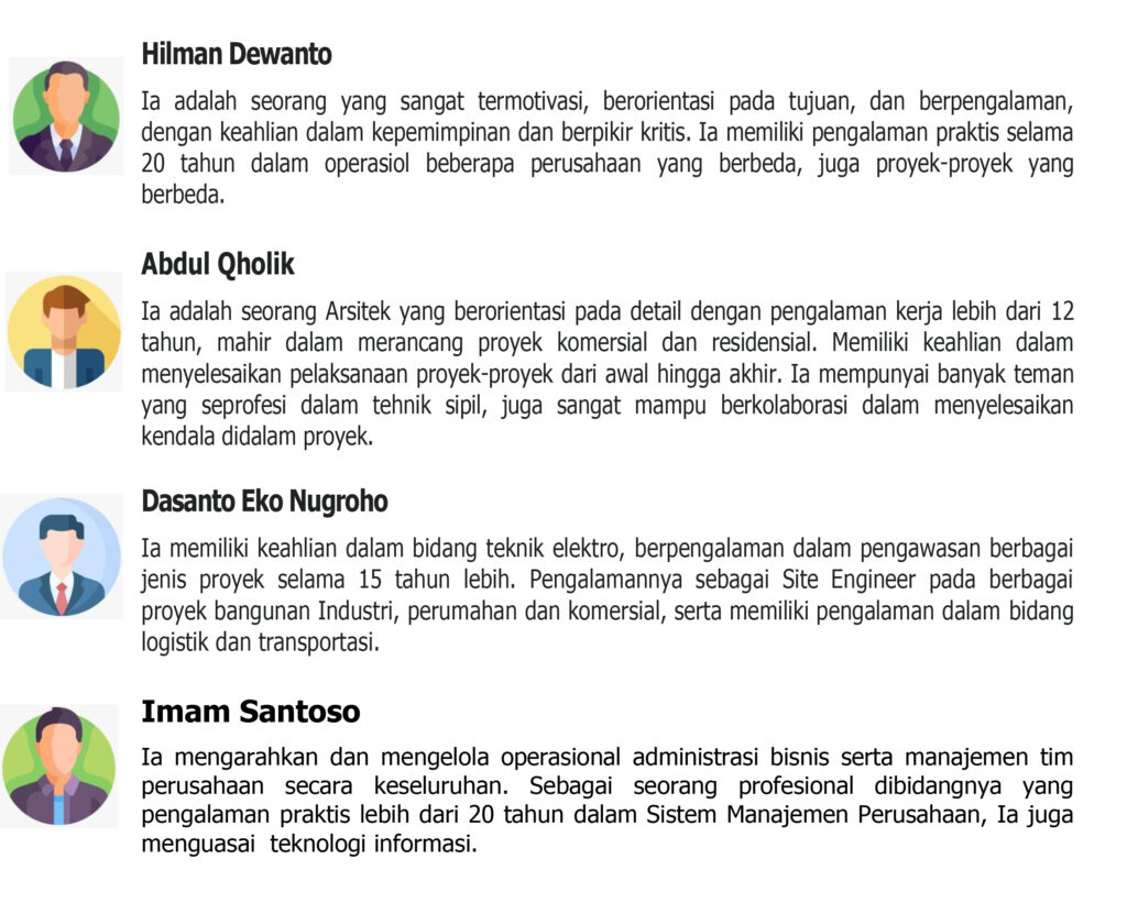 Didukung oleh sumber daya manusia yang ahli dan profesional serta penggunaan material terbaik, kami memastikan setiap proyek terwujud sesuai standar, regulasi dan ketepatan waktu. Kepuasan pelanggan adalah prioritas utama kami, menjadikan DCM Kontraktor sebagai mitra terpercaya dalam mewujudkan konstruksi yang fungsional dan berdaya guna.